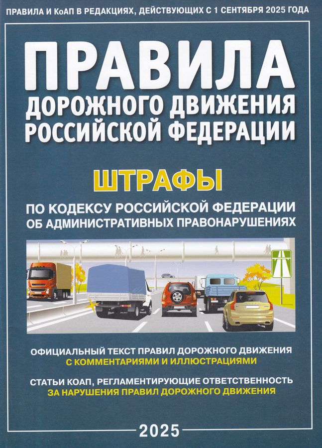 В издании опубликован текст Правил дорожного движения Рос- сийской Федерации, утверждённых постановлением Совета Министров — Правительства Российской Федерации от 23 октября 1993 года №1090, в редакции, учитывающей изменения, вносимые в текст постановлениями Правительства Российской Федерации 16 июля 2025 года № 1071 (действуют с 26 июля 2025 года) и от 27 мая'2025 года № 731 (вступают в силу с 01 сентября 2025 года). Отдельные пункты Правил снабжены комментариями редакции, выделенными голубым цветом, а также иллюстрациями, аналогичными по содержанию иллюстрациям из вопросов «Экзаменационных билетов для приёма теоретических экзаменов на право управления транспортными средствами» в Госавтоинспекции МВД России. В тексте Правил редакцией размещены выделенные зелёным цветом ссылки на ряд статей Кодекса Российской Федерации об административных правонарушениях, регламентирующих ответственность участников дорожного движения за нарушение соответствующих положений Правил. В конце издания размещена таблица с подробной подборкой статей Кодекса Российской Федерации об административных правонарушениях, регламентирующих ответственность участников дорожного движения за нарушения Правил дорожного движения, в редакции Федерального закона от 31.07.2025 года №281-ФЗ, действующей с 01 сентября 2025 года. Также приведены выдержки из ряда статей Гражданского и Уголовного кодексов Российской Федерации, регламентирующих ответственность водителей и владельцев транспортных средств за нарушения Правил дорожного движения.