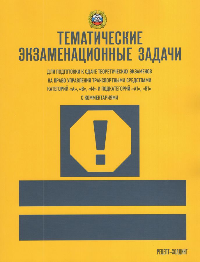 Настоящее пособие является изданием комплекта экзаменационных задач, утвержденных Главным государственным инспектором безопасности дорожного движения Российской Федерации, которые используются при приеме теоретических экзаменов на право управления транспортными средствами категорий «А», «В», «М» и. подкатегорий «А1», «В1» в подразделениях Государственной инспекции безопасности дорожного движения. Категория «А» — мотоциклы. Категория «В» - автомобили, разрешенная максимальная масса которых не превышает 3,5 т и число сидячих мест которых, помимо сиденья водителя, не превышает восьми. Категория «М» -— мопеды и легкие квадроциклы. Подкатегория «А1» - мотоциклы с рабочим объемом двигателя внутреннего сгорания, не превышающим 125 см3, и максимальной мощностью, не превышающей 11 квт. Подкатегория «В1» - трициклы и квадроциклы. Вопросы, включенные в экзаменационные задачи, позволяют проверить знания: — Правил дорожного движения Российской Федерации; -Основных положений по допуску транспортных средств к эксплуатации и обязанностей должностных лиц по обеспечению безопасности дорожного движения; -законодательства Российской Федерации в части, касающейся обеспечения безопасности дорожного движения, а также уголовной, административной и гражданской ответственности водителей транспортных средств; — основ безопасного управления транспортным средством; — порядка оказания первой помощи лицам, пострадавшим при дорожно-транспортном происшествии. Экзаменационные задачи сгруппированы в тематические разделы. Это облегчает изучение вопросов, знание которых необходимо не только для успешной сдачи теоретического экзамена, но, и для безопасного управления транспортными средствами. : Подробные объяснения правильных решений экзаменационных задач содержатся в Комментариях к тематическим экзаменационным задачам, расположенных в конце настоящего издания. В Тематические экзаменационные задачи для подготовки к сдаче теоретических экзаменов на право управления транспортными средствами категорий «А», «В», «М» и подкатегорий «А1», «В1» внесены изменения и дополнения. Переработанные тексты тематических задач используются при приеме экзаменов на право управления транспортными средствами.