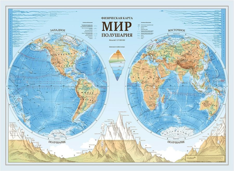 Мир Физическая Полушария 1:37М (с ламинацией/ упаковка полиэтиленовый рукав с европодвесом)101х69см.