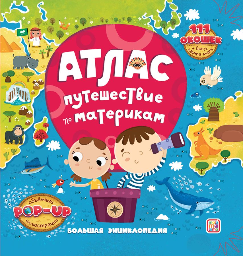 Книга «Атлас. Путешествие по материкам» из серии «Большая энциклопедия» — это настоящий атлас мира для вашего малыша. Вместе с персонажами-путешественниками на страницах книги он посетит каждый материк, узнает о нём много интересных фактов, познакомится с флорой и фауной, самыми интересными и знаменитыми достопримечательностями. Во вложении к энциклопедии — большая карта мира, по которой удобно изучать государства и флаги. Красочные иллюстрации, сотни открывающихся окошек, интересные факты — отправляйтесь в кругосветное путешествие вместе с книгой «Атлас. Путешествие по материкам».
