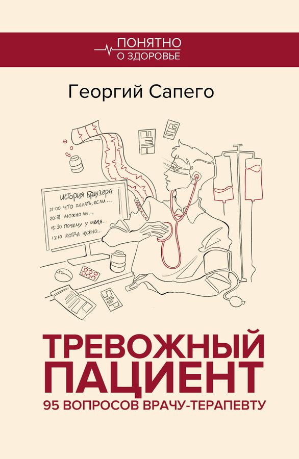 "Тревожный пациент. 95 вопросов врачу-терапевту" — это откровенный разговор с опытным врачом, где мифы сталкиваются с медицинской реальностью. Георгий Сапего, терапевт с 25-летним стажем, простым языком объясняет сложные процессы, происходящие в нашем организме, отвечая на самые неожиданные и важные вопросы о здоровье. Это идеальное чтение для всех, кто хочет понимать свое тело, не пугаться каждого симптома и отличать мифы от реальных медицинских фактов. Можно ли пить ледяную воду в жару и как это используют спортсмены? Как бульканье в животе может спасти жизнь и почему его исчезновение после операции — тревожный сигнал? Действительно ли 36,6 °С — эталон нормальной температуры и может ли кашель быть полезным? Авторский стиль — живой и образный — превращает сложные медицинские темы в увлекательные истории. После прочтения вы будете совершенно по-новому смотреть на работу своего тела.