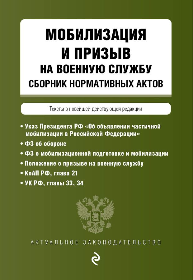 В этом небольшом сборнике - тексты всех основных нормативных правовых актов по вопросам мобилизации и призыва на военную службу в новейшей действующей редакции с изменениями и дополнениями на 2023 год.. Издание содержит тексты: федеральных законов "Об обороне" и "О мобилизационной подготовке и мобилизации", Указа Президента РФ от 21.09.2022 № 647 об объявлении частичной мобилизации, Положения о призыве на военную службу граждан Российской Федерации, а также главы 21 Кодекса РФ об административных правонарушениях, глав 33 и 34 Уголовного кодекса РФ.