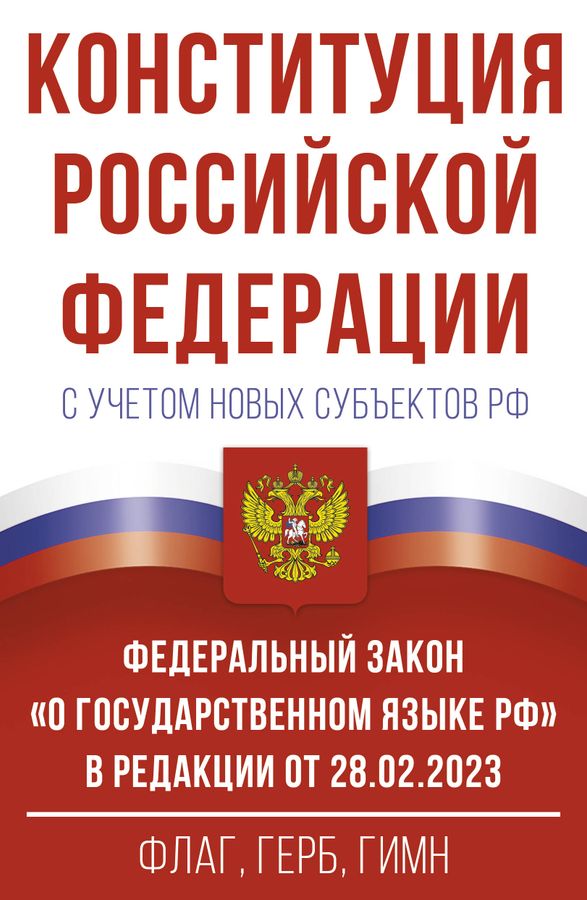 В соответствии с Конституцией Российской Федерации государственным языком Российской Федерации на всей ее территории является русский язык как язык государствообразующего народа, входящего в многонациональный союз равноправных народов Российской Федерации. В целях совершенствования механизмов обеспечения статуса русского языка и осуществления контроля за соблюдением норм современного литературного языка Федеральным Собранием РФ внесены изменения в Федеральный закон "О государственном языке Российской Федерации". Данное издание включает в себя: — официальный текст Конституции РФ с учетом образования в составе Российской Федерации новых субъектов: Донецкой Народной Республики, Луганской Народной Республики, Запорожской и Херсонской областей — Федеральные конституционные законы "О Государственном флаге Российской Федерации", "О Государственном гербе Российской Федерации", "О Государственном гимне Российской Федерации" — Федеральный закон "О государственном языке Российской Федерации", включая поправки от 28.02.2023 — текст Государственного гимна Российской Федерации. В удобном формате для широкого круга читателей.