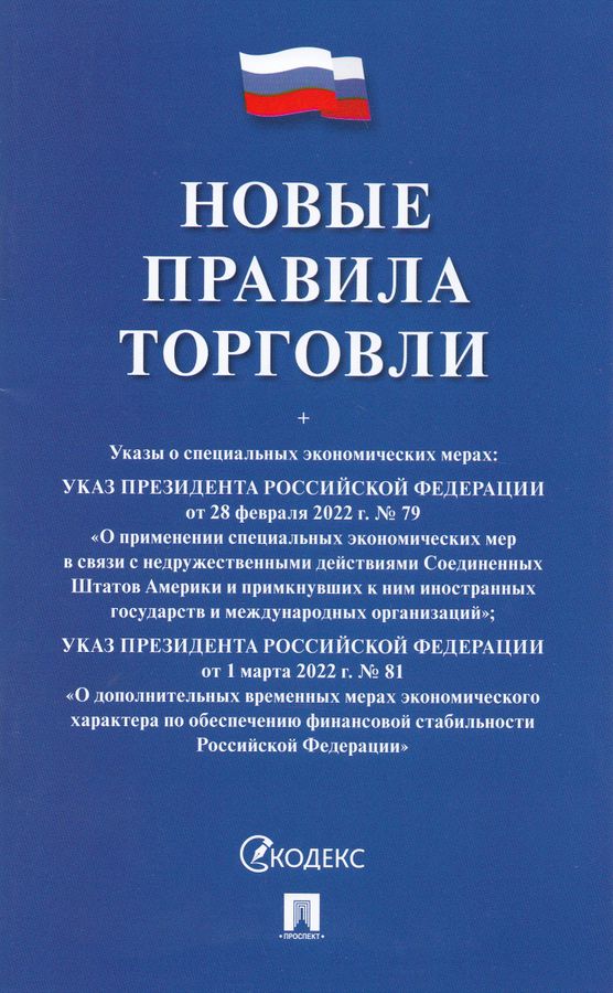В сборник включены основные нормативные акты, регулирующие отношения, возникающие между продавцом и покупателем и определяющие требования в области продажи товаров, в том числе Указы Президента Российской Федерации от 28 февраля 2022 г. № 79 «О применении специальных экономических мер в связи с недружественными действиями Соединенных Штатов Америки и примкнувших к ним иностранных государств и международных организаций» и от 1 марта 2022 г. № 81 «О дополнительных временных мерах экономического характера по обеспечению финансовой стабильности Российской Федерации». В настоящем издании нормативные документы приводятся с учетом изменений, принятых нормативными актами, опубликованными на дату подписания издания в печать. Для широкого круга читателей.