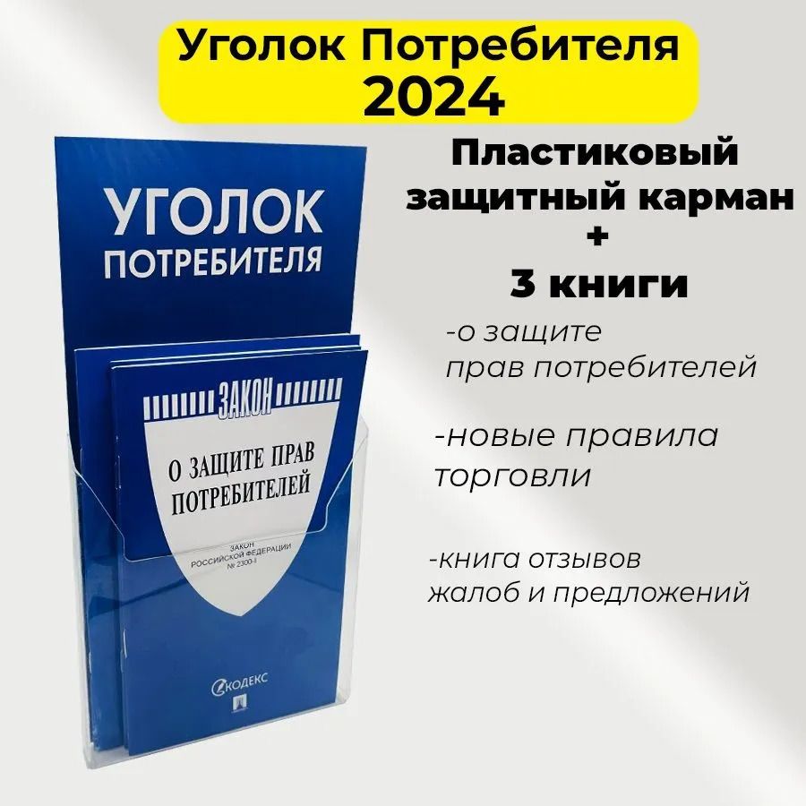 Уголок потребителя. Комплект в пластиковом кармане. Комплект «Уголок потребителя. Комплект в пластиковом кармане» включает три издания, которые помогут потребителям и предпринимателям разобраться в правах и обязанностях, связанных с потребительскими отношениями. В комплект входят: Новые правила торговли. Сборник нормативных правовых актов. Правила торговли содержат общие правила и требования, которые должны соблюдаться как продавцами, так и покупателями. Они регулируют правила проведения торгов и защиты прав потребителей, а также определяют процедуры разрешения конфликтов между продавцом и покупателем, Закон РФ «О защите прав потребителей» № 2300-1. Основополагающий нормативный акт, регулирующий права и обязанности потребителей и продавцов. В нем изложены основные положения защиты прав потребителей, включая правила обмена и возврата товаров, ответственность продавцов за дефекты товаров и качество услуг, Книга отзывов, жалоб и предложений. С инструкцией по заполнению. Позволяет потребителям оставлять отзывы о качестве товара или услуги и регистрировать жалобы в случае несоответствия качества требованиям или передать свое предложение для улучшения работы продавца, Пластиковый карман. Комплект «Уголок покупателя» предназначен для всех, кто желает защитить свои права в качестве покупателя и обеспечить соблюдение правил и законов в области торговли. Комментарий книга отзывов и предложений 2024; закон о защите прав потребителей 2024; книга отзывов и предложений; книга отзывов; о защите прав потребителей 2024; новые правила торговли 2024; фз о защите прав потребителей; о защите прав потребителей; закон о защите прав потребителей; книга отзывов жалоб и предложений; уголок потребителя; книги бухгалтера