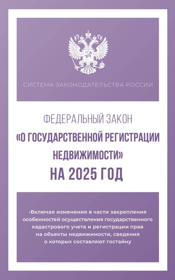 Данное издание включает текст Федерального закона "О государственной регистрации недвижимости" на 2025 год. В тексте используются маркированные списки и колонтитулы для удобного восприятия и беглого ознакомления с содержанием книги. Издание учитывает все изменения, опубликованные в официальных источниках на момент подписания издания в печать.
