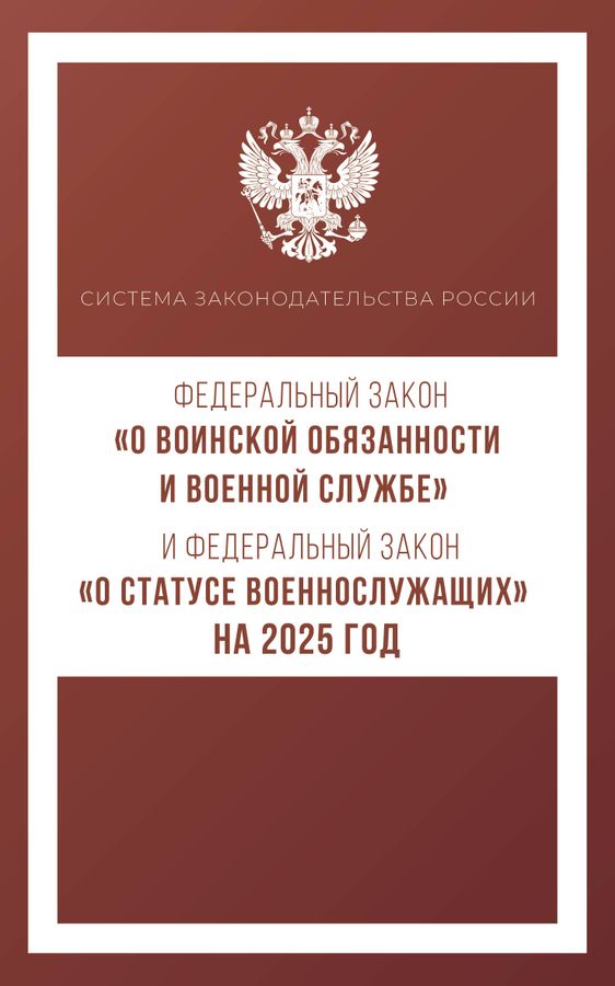 Данное издание включает тексты Федеральных законов "О воинской обязанности и военной службе" и "О статусе военнослужащих" на 2025 год. В тексте используются маркированные списки и колонтитулы для удобного восприятия и беглого ознакомления с содержанием книги. Издание учитывает все изменения, опубликованные в официальных источниках на момент подписания издания в печать.