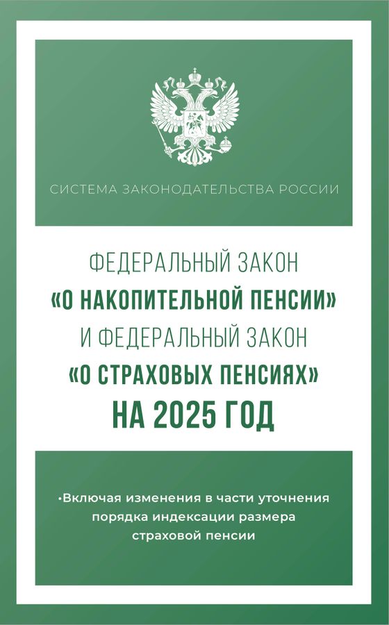 Данное издание включает текст Федеральных законов "О накопительной пенсии" и "О страховых пенсиях" на 2025 год. В тексте используются маркированные списки и колонтитулы для удобного восприятия и беглого ознакомления с содержанием книги. Издание учитывает все изменения, опубликованные в официальных источниках на момент подписания издания в печать.