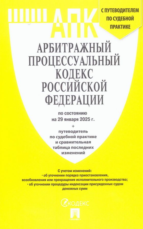 Текст Кодекса сверен с официальным источником и приводится по состоянию на 29 января 2025 г. года с использованием общепринятых сокращений. Представленное вашему вниманию издание учитывает только изменения, внесенные опубликованными в официальных источниках на дату подписания издания в печать федеральными законами. Текст статей приводится на дату, обозначенную на обложке данной книги (дата актуализации). Если есть изменения, вступающие в силу позднее, то вместе с редакцией нормы, действующей на эту дату, приводится норма в новой редакции и указывается дата, с которой она вступает в силу. Издание содержит путеводитель по актуальной судебной практике Верховного Суда РФ, а также действующим постановлениям Пленума Высшего Арбитражного Суда РФ — соответствующие статьи кодекса помечены знаком, после которого приводятся название, реквизиты и пункты необходимого документа.