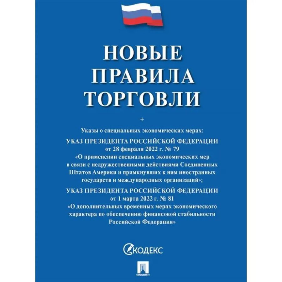 В сборник включены основные нормативные акты, регулирующие отношения, возникающие между продавцом и покупателем и определяющие требования в области продажи товаров, в том числе Указы Президента Российской Федерации от 28 февраля 2022 г. № 79 "О применении специальных экономических мер в связи с недружественными действиями Соединённых Штатов Америки и примкнувших к ним иностранных государств и международных организаций" и от 1 марта 2022 г. № 81 "О дополнительных временных мерах экономического характера по обеспечению финансовой стабильности Российской Федерации". В настоящем издании нормативные документы приводятся с учётом изменений, принятых нормативными актами, опубликованными на дату подписания издания в печать. Для широкого круга читателей.