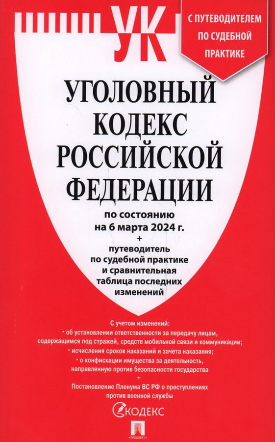 Текст Кодекса сверен с официальным источником и приводится по состоянию на 6 марта 2024 года года с использованием общепринятых сокращений. Представленное вашему вниманию издание учитывает только изменения, внесенные опубликованными в официальных источниках на дату подписания издания в печать федеральными законами. Текст статей приводится на дату, обозначенную на обложке данной книги (дата актуализации). Если есть изменения, вступающие в силу позднее, то вместе с редакцией нормы, действующей на эту дату, приводится норма в новой редакции и указывается дата, с которой она вступает в силу. Издание содержит путеводитель по актуальной судебной практике Верховного Суда РФ — соответствующие статьи кодекса помечены знаком, после которого приводятся название, реквизиты и пункты необходимого документа.