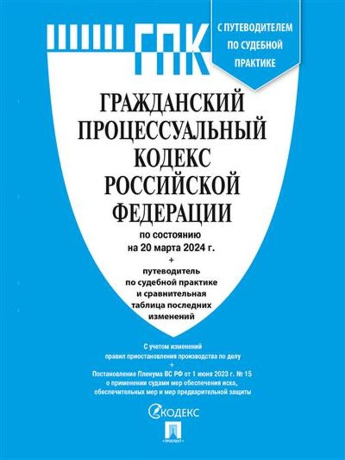 Текст Кодекса сверен с официальным источником и приводится по состоянию на 20 марта 2024 г. с использованием общепринятых сокращений. Представленное вашему вниманию издание учитывает только изменения, внесенные опубликованными в официальных источниках на дату подписания издания в печать федеральными законами. Текст статей приводится на дату, обозначенную на обложке данной книги (дата актуализации). Если есть изменения, вступающие в силу позднее, то вместе с редакцией нормы, действующей на эту дату, приводится норма в новой редакции и указывается дата, с которой она вступает в силу. Издание содержит путеводитель по актуальной судебной практике Верховного Суда РФ, а также действующим постановлениям Пленума Высшего Арбитражного Суда РФ - соответствующие статьи кодекса помечены знаком , после которого приводятся название, реквизиты и пункты необходимого документа.