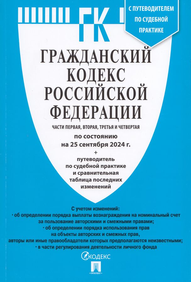 Гражданский кодекс РФ. Части 1,2,3,4 на 25.09.2024 + путеводитель по судебной практике и сравнительная таблица последних изменений | Автор не указан