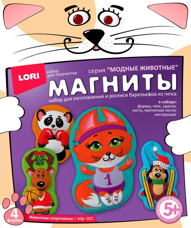 Комплектация: формы, гипс, акварельные краски, кисть, магнитная лента, инструкция.
