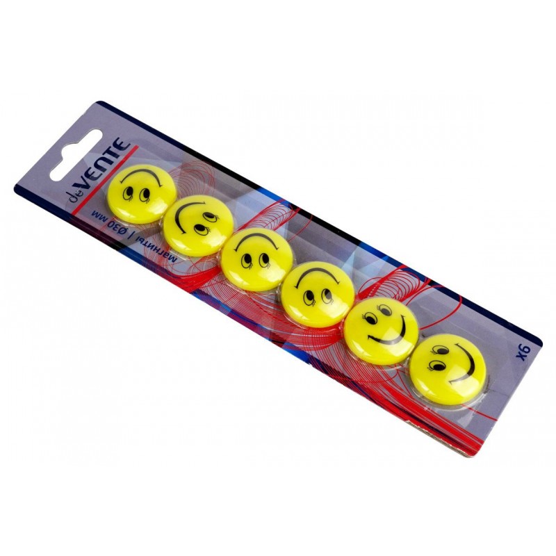 Магнит для доски офисной "deVENTE. Smile", 30 мм, 6 шт, желтый цвет, в картонном блистере