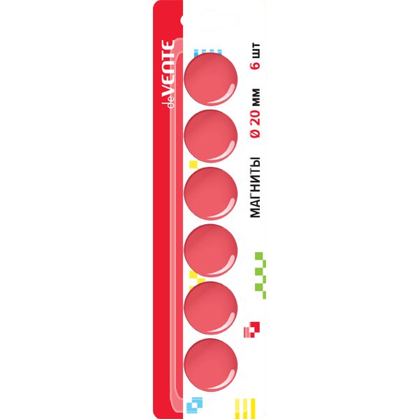 Магнит д/доски d-20мм набор 6шт. красный, блистер deVENTE 6021904