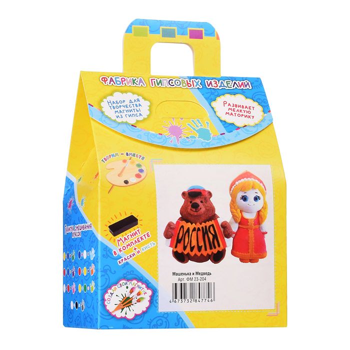 Состав набора: фигурки из гипса, кисть, краски, магнитная лента.