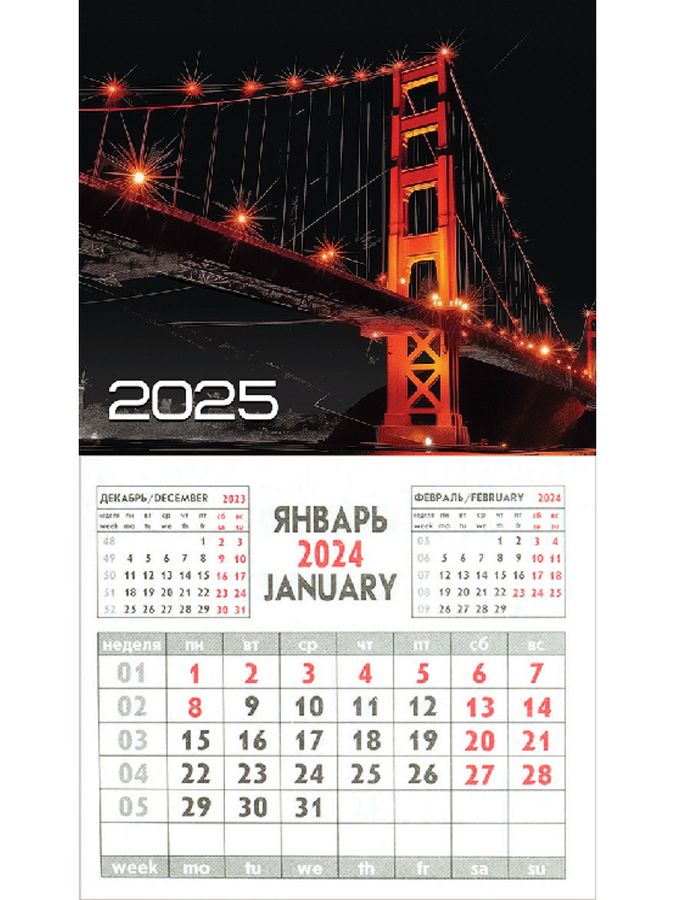 Календарь 2025 на магните 95х165мм Склейка 12л Мост и огни PROF-PRESS КМ-9569