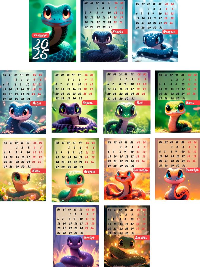 Календарь 2025 на магните 110х145мм Склейка 12л Мультяшные змейки PROF-PRESS КМ-9578