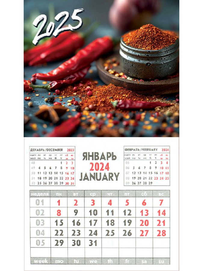 Календарь 2025 на магните 95х165мм Склейка 12л Специи и перец PROF-PRESS КМ-9558