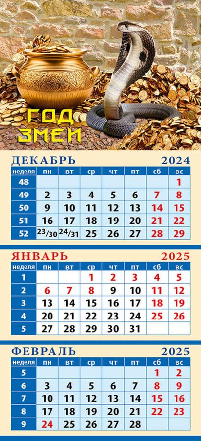 Календарь 2025 на магните 116х245мм Год змеи День за Днем 34511