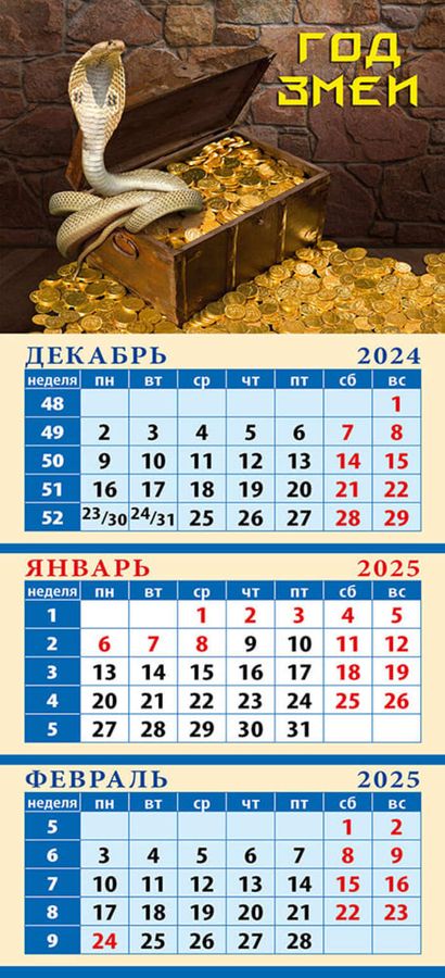 Календарь 2025 на магните 116х245мм Год змеи День за Днем 34515