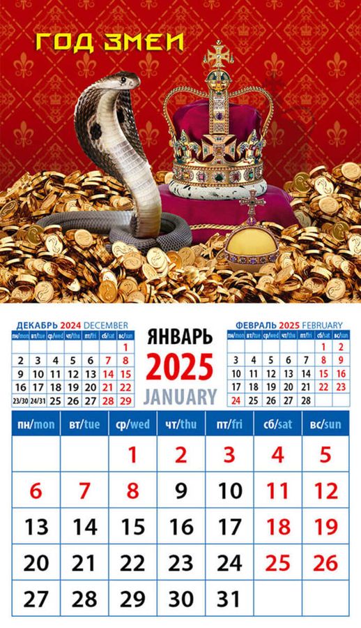 Календарь 2025 на магните 94х167мм 12л Год змеи День за Днем 20525