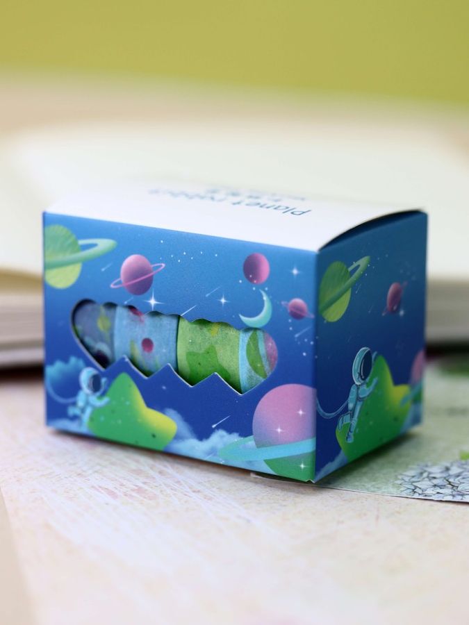 Набор декоративной клейкой ленты, с нанесением оригинального дизайнерского принта. Лента выполнена из знаменитой японской бумаги «Васи», это бумажная клейкая лента, имеющая широкое применение во всем мире. Особенность ленты в том, что она подходит для любых поверхностей, легко клеится и её можно бесследно удалить, не повреждая поверхность. В наборе 4 штуки лент шириной 14 мм, длина намотки каждой ленты 2 метра. Вес набора: 20 гр. Благодаря необычному исполнению, декоративный скотч можно применять как в повседневном использовании, так и в творчестве, скрапбукинге, флористике, а так же декорировании интерьера, оформления подарков, художественных работ. Каждый набор упакован в прочную картонную коробку. Размер упаковки: 4.5 х 6 х 4.5 см.