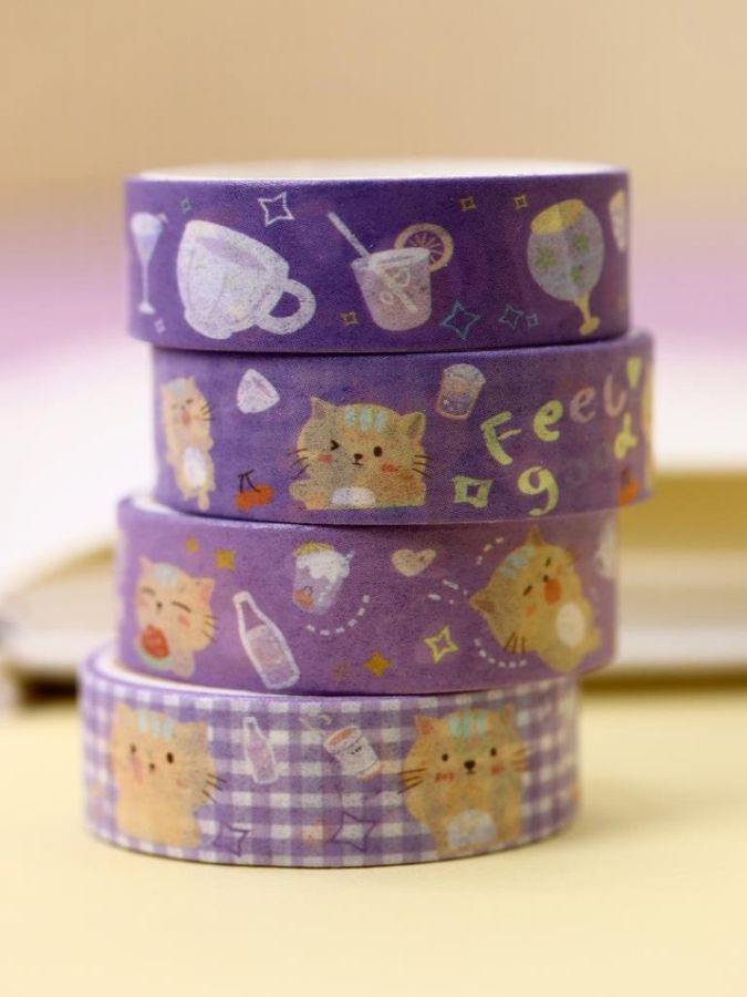 Лента для декора клейкая 14мм х 2м набор 4шт Lovely cartoon фиолетовая ILIKEGIFT 636c-02