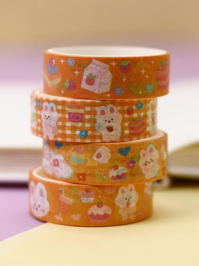 Лента для декора клейкая 14мм х 2м набор 4шт Lovely cartoon желтая ILIKEGIFT 636c-03