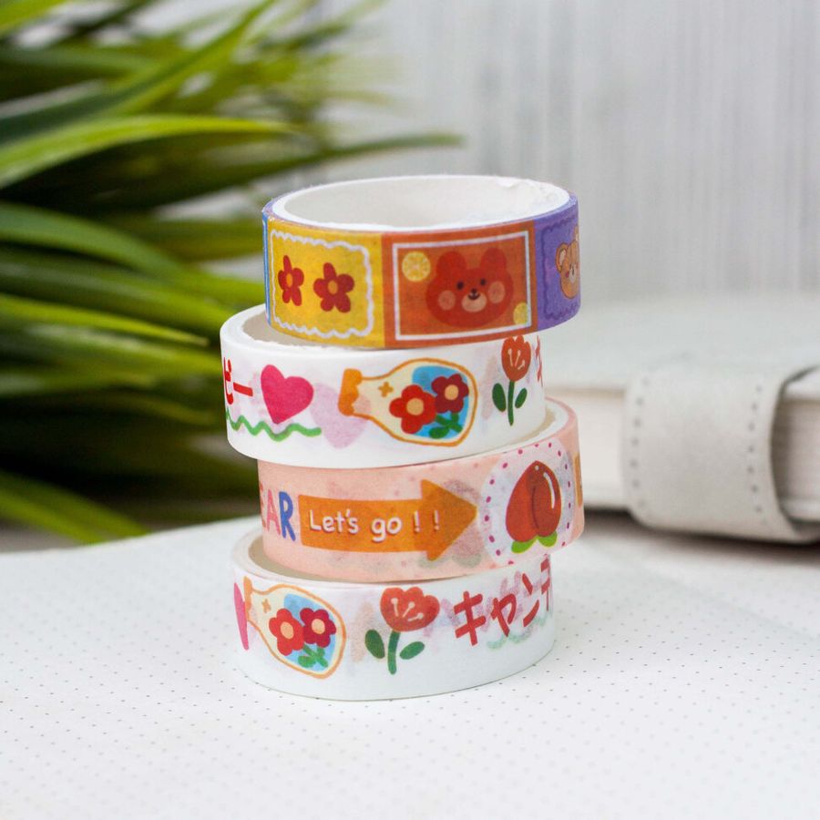 Набор декоративной клейкой ленты, с нанесением оригинального дизайнерского принта. Лента выполнена из знаменитой японской бумаги «Васи», это бумажная клейкая лента, имеющая широкое применение во всем мире. Особенность ленты в том, что она подходит для любых поверхностей, легко клеится и её можно бесследно удалить, не повреждая поверхность. В наборе 4 штук лент шириной 15 мм, длина намотки каждой ленты 2 метра. Вес набора: 20 гр. Благодаря необычному исполнению, декоративный скотч можно применять как в повседневном использовании, так и в творчестве, скрапбукинге, флористике, а так же декорировании интерьера, оформления подарков, художественных работ. Каждый набор упакован в прочную картонную коробку. Размер упаковки: 4,3 х 6,5 х 4,3 см.