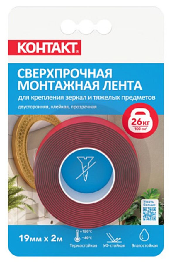 Предназначена для быстрого и надежного крепления предметов без использования инструментов и гвоздей как внутри, так и снаружи помещений. За счёт клеевого слоя с высокой адгезией и основы из вспененного акрила, на ленту можно крепить даже тяжёлые предметы.Благодаря бесцветной основе лента отлично подходит для незаметного крепления стеклянных и других прозрачных предметов. Не оставляет следов клея на поверхности после удаления. Устойчива к воздействию УФ-излучения, перепадам температур и влажности.