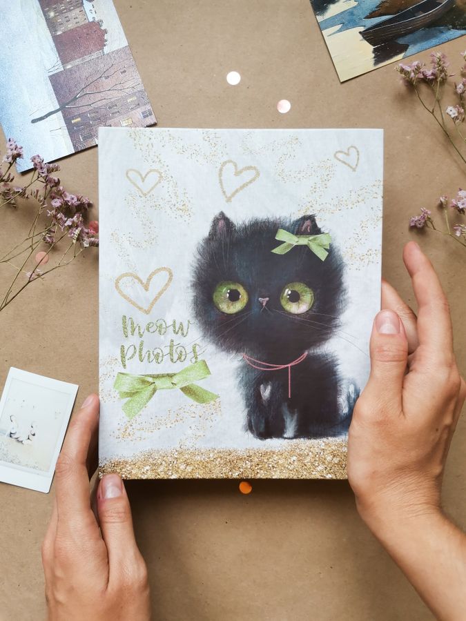 FA 200.002-2 Фотоальбом на 200 фото 10х15 см, пластик. листы "sweet kittens" Чёрный котёнок (10228020/060224/5014988)