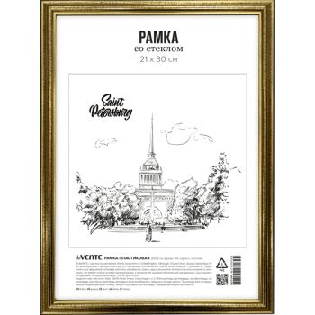 Рамка пластиковая "deVENTE" 21x30 см, формат A4, серия 2, стекло, задняя панель - переплетный картон, с креплением для подвеса, золотой, в термоусадочной пленке