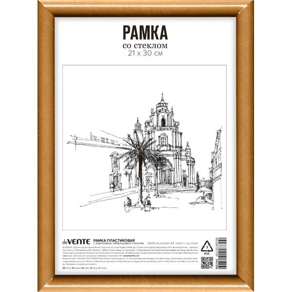 Рамка пластиковая "deVENTE" 21x30 см, формат A4, серия 1, стекло, задняя панель - переплетный картон, с креплением для подвеса, под клен, в термоусадочной пленке