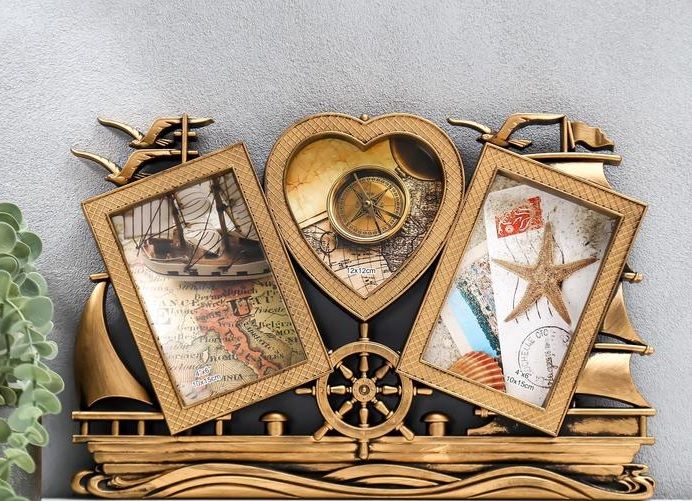 Фоторамка пластиковая 25х40см Корабль темное золото на 3 фото SM 3983967