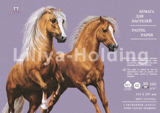 Бумага для пастелей "Палаццо", цвет "Lavanda", с тиснением "Холст" с содержанием хлопка 40 %, плотность 160 г/м² Palazzo – окрашенная в массе цветная бумага, плотностью 160 г/м2, состоит из 40% хлопкового волокна и имеет тиснение «Холст» c одной стороны. Используется как для печатных и дизайнерских работ (скручивание, резка, склеивание, создание карт, скрапбукинг), так и для художественных. Подходит для различных пастельных техник, а так же и для использования других материалов (уголь, сепия, сангина, карандаш, даже акварельные краски и гуашь). Качественная структура бумаги гарантирует сохранность работ.