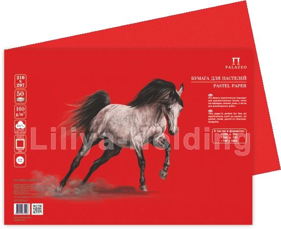 Бумага для пастелей "Палаццо", цвет "Red", с тиснением "Холст" с содержанием хлопка 40 %, плотность 160 г/м² Palazzo – окрашенная в массе цветная бумага, плотностью 160 г/м2, состоит из 40% хлопкового волокна и имеет тиснение «Холст» c одной стороны. Используется как для печатных и дизайнерских работ (скручивание, резка, склеивание, создание карт, скрапбукинг), так и для художественных. Подходит для различных пастельных техник, а так же и для использования других материалов (уголь, сепия, сангина, карандаш, даже акварельные краски и гуашь). Качественная структура бумаги гарантирует сохранность работ.