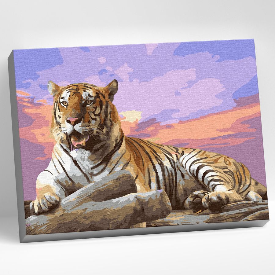 Картина по номерам На закате - это набор для детского творчества, который позволяет нарисовать на холсте величественного тигра на фоне красивого заката. Количество цветов: 19 Уровень сложности: 2 (лёгкий) Состав набора: цветной холст из натурального хлопка на деревянном подрамнике с нанесенной схемой рисунка, нейлоновые кисти разного размера, 3шт., профессиональные акриловые краски, устойчивые к выцветанию.