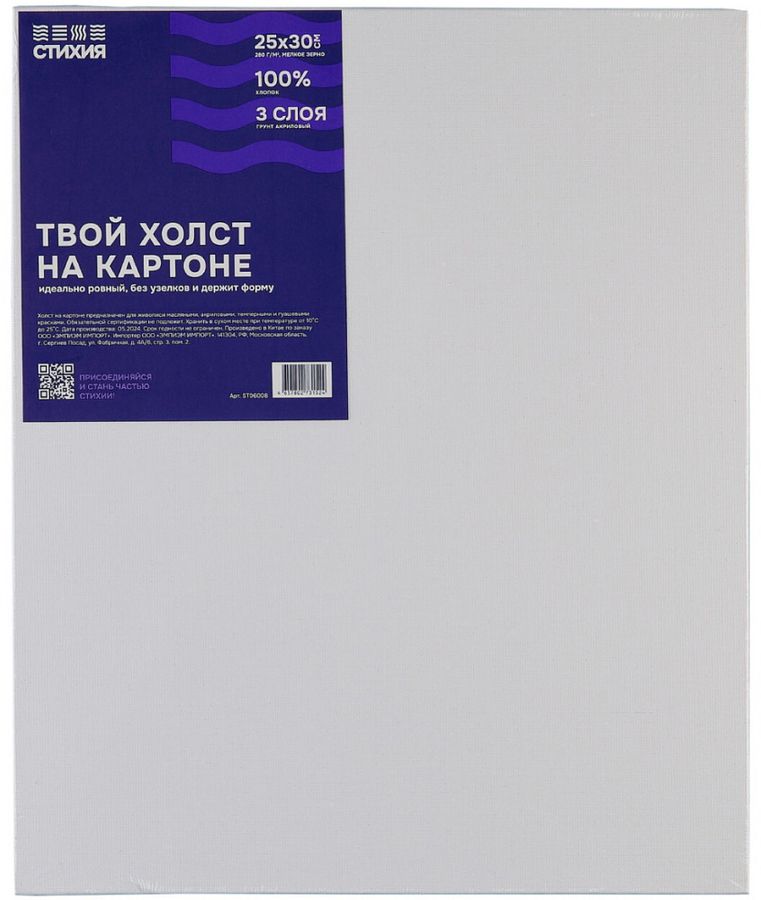 Холст 25х30см на картоне акрил.грунт хлопок мелкое зерно Стихия ST06008