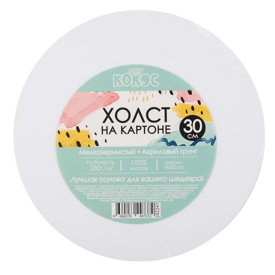 Холст d30см круглый на карт.грунт. 100% хлопок 280гр мелкое зерно Кокос 242241