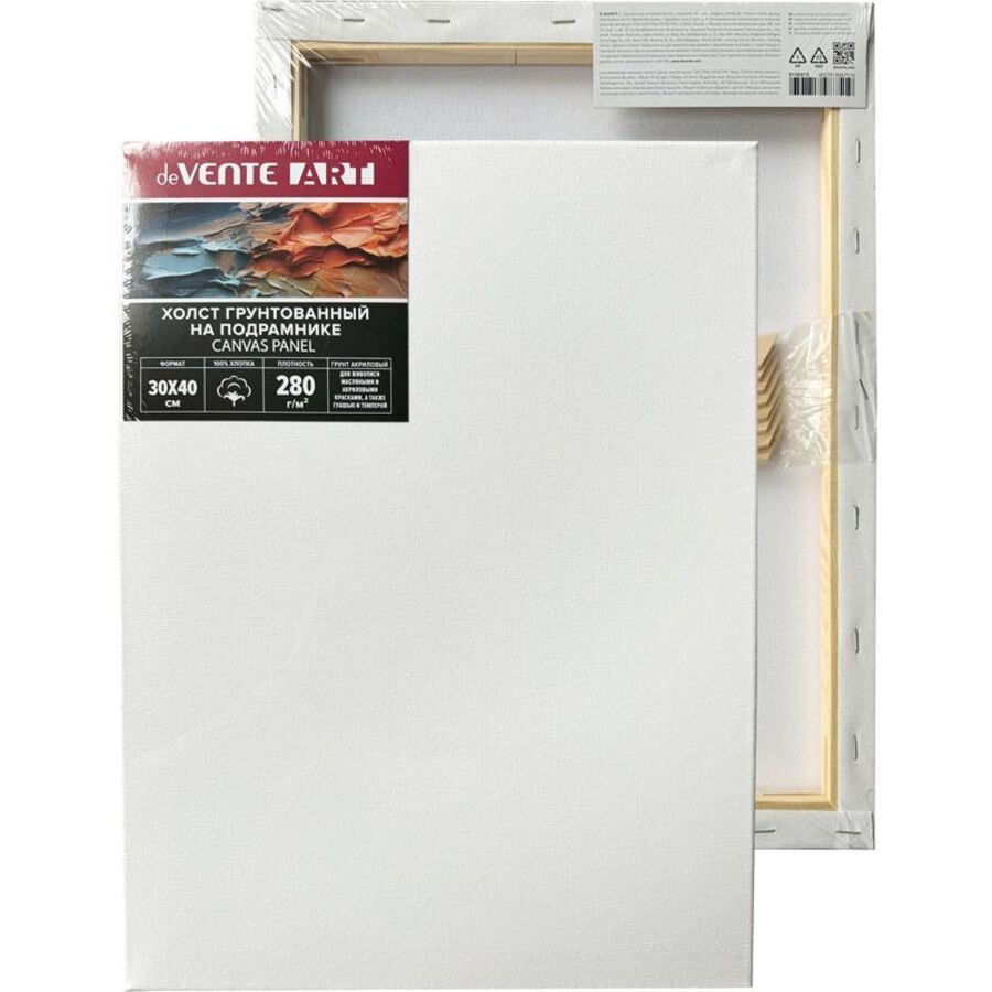 Холст на подрамнике 30x40 см грунтованный "deVENTE. ARTISTIC STUDIO" 100% хлопок 280 г/м², мелкое зерно, цвет белый, набор клиньев, термоусадочная пленка