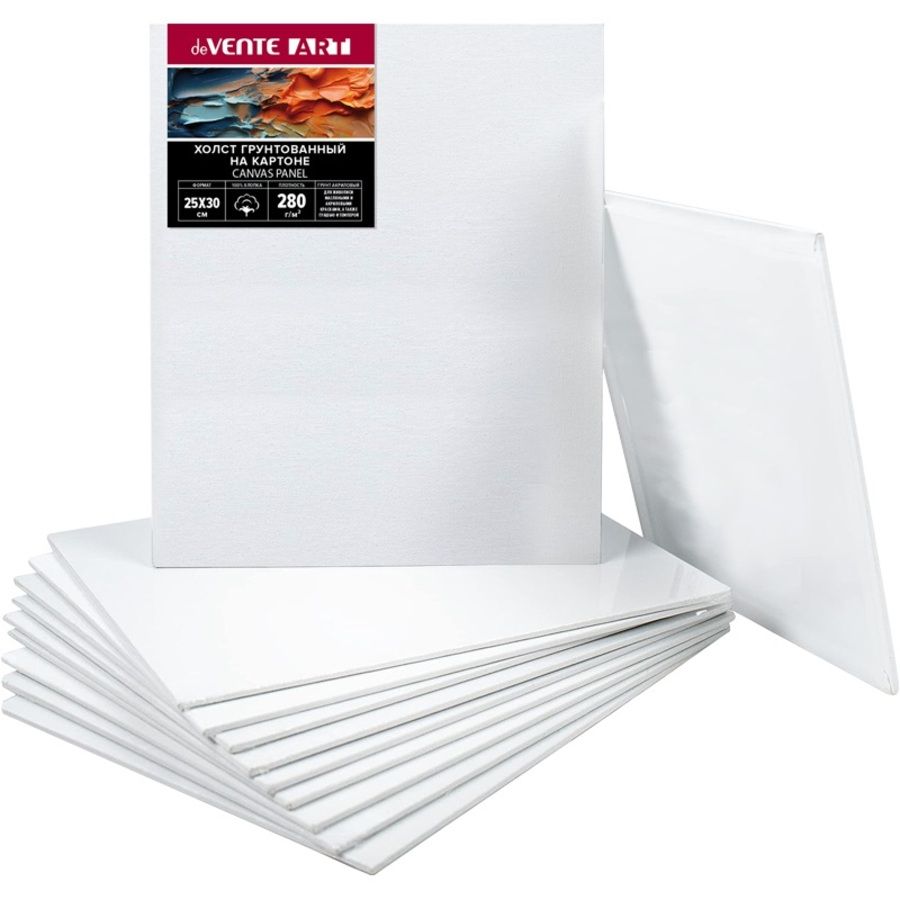 Холст на картоне 25x30 см грунтованный "deVENTE. ARTISTIC STUDIO" 100% хлопок 280 г/м², мелкое зерно, цвет белый, термоусадочная пленка