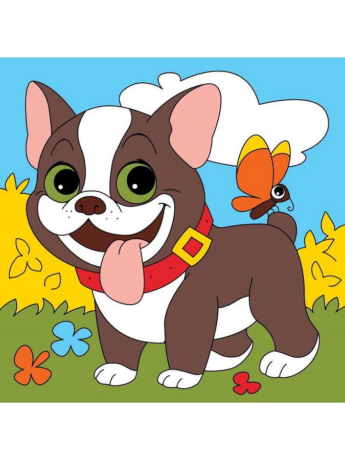 Картина по номерам 15х15см холст с красками Радостный щенок