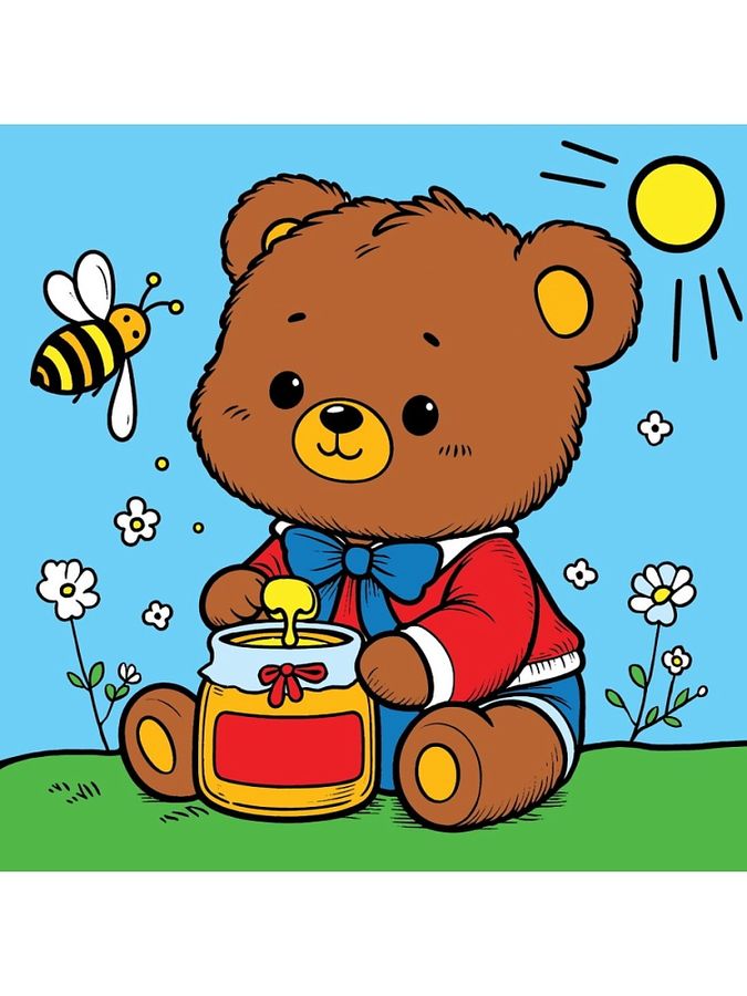 Картина по номерам 15х15см холст с красками Медвежонок с медом
