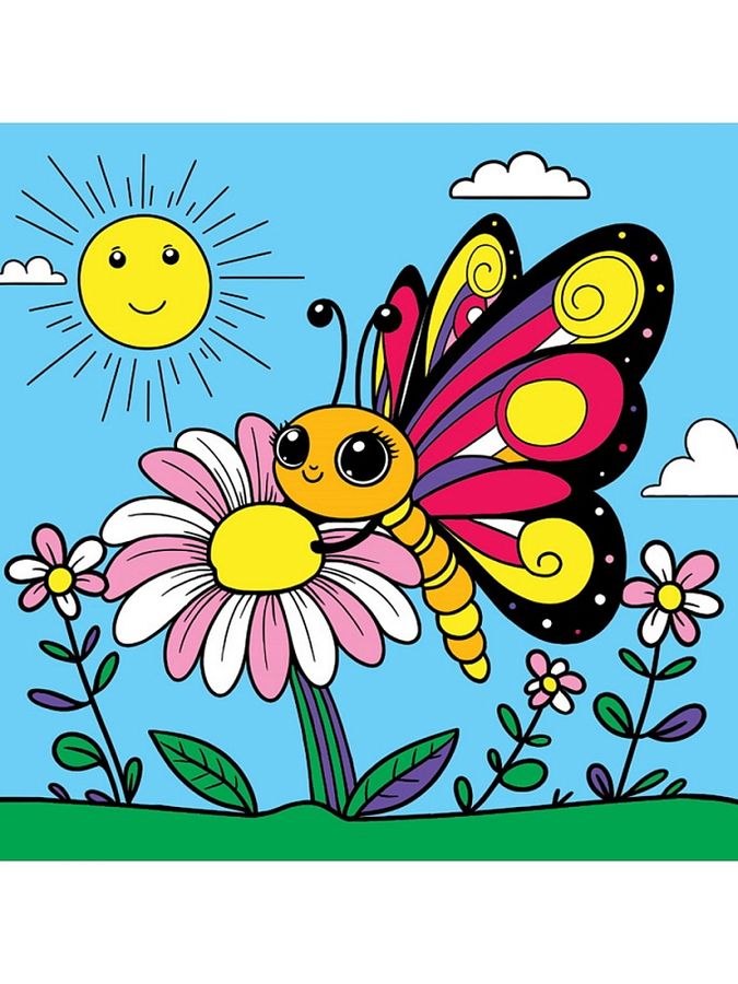 Картина по номерам 15х15см холст с красками Яркая бабочка