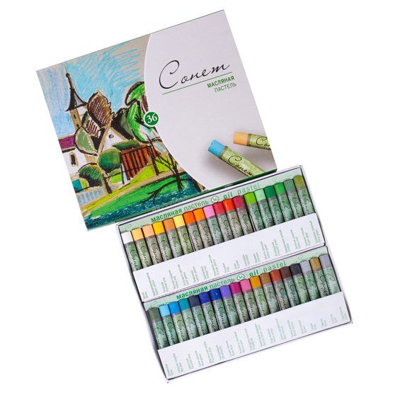 Масляная пастель «Сонет» изготовлена из высококачественных материалов. Она обладает интенсивностью и яркостью цвета, хорошей кроющей способностью, смешиваемостью, мягкостью. Пастель легко ложится на различные фактуры - цветную бумагу, бумагу для рисования, картон, дерево, керамику. Пастелью удобно работать на открытом воздухе. Дополнительное закрепление рисунка не требуется. Представлена в наборах по 12, 24 и 36 цветов. Состав набора: белая, неаполитанская желтая, телесная, желтая средняя, золотисто-желтая, лимонная, оранжевая, оранжево-желтая, розовая, алая, киноварь, кармин, желто-зеленая, изумрудная, виридоновая зеленая, зеленая средняя, зеленая темная, оливково-зеленый, оливковая, небесно-голубая, церулеум, сине-зеленая, берлинская лазурь, ультрамарин, синяя темная, розовато-лиловый, пурпурно-красный, фиолетовый хинакридон, охра желтая, сиена натуральная, сиена жженая, коричневая, серая, черная, золотая, серебряная. Технические характеристики: - назначение: художественные работы; - тип: масляная; - форма мелка: круглая; - цвета набора: ассорти 36 штук; - упаковка - картонная коробка в термоусадочной пленке; - страна производства - Китай. Хранить в сухом месте при температуре от 0 до 35 °С. Срок годности не ограничен. Обязательной сертификации не подлежит.