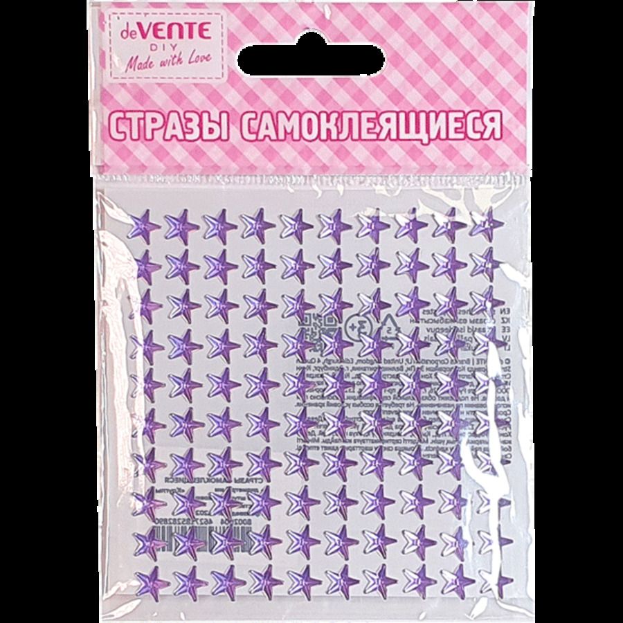 Стразы самоклеящиеся "deVENTE. Star" акриловые, размер 8 мм, карточка 90x90 мм, фиолетовые, 100 шт в пластиковом пакете с блистерным подвесом