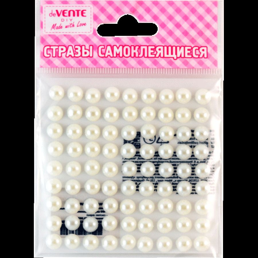 Стразы самоклеящиеся "deVENTE. Жемчуг" размер 8 мм, 80 шт, цвет белый, в пластиковом пакете с блистерным подвесом