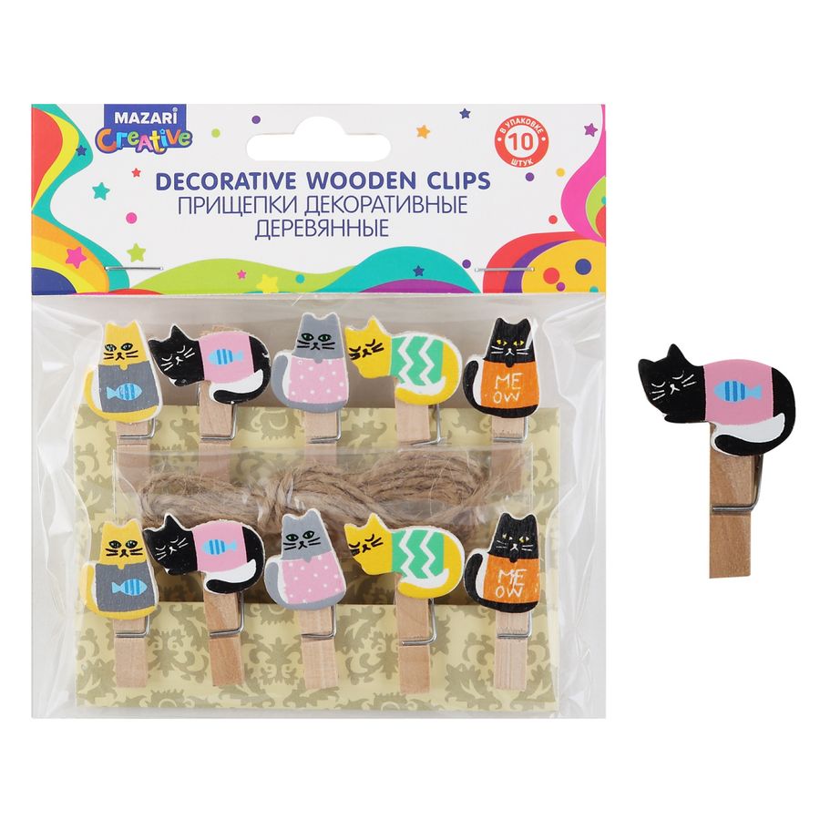 Прищепки декоративные деревянные 10шт Кошечки MAZARI M-1539